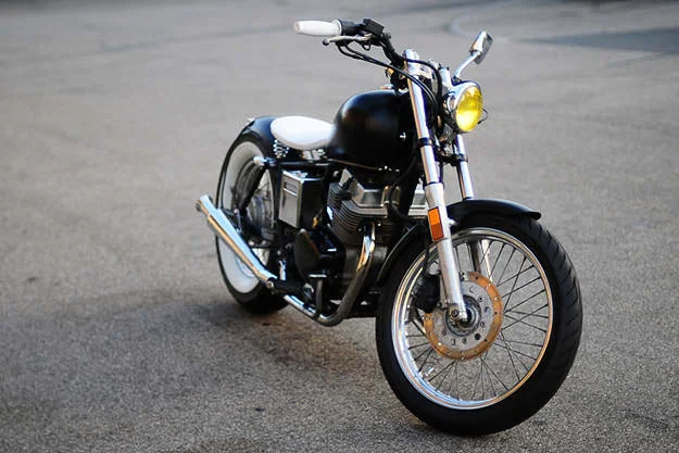 "Think of a custom Honda and it’s invariably a CB. I don’t think I’ve seen any Honda Rebel customs before, and I certainly haven’t seen a Rebel bobber. But this little machine, nicknamed ‘Rocky’ by owner Jason Wolske, looks sweet. And even better, he’s cataloged the whole build on a Tumblr blog, along with excellent photography. When Jason bought his bone-stock 1985 Honda Rebel CMX250, it turned out to have no compression in one cylinder. So he bought a replacement engine for the princely sum of $350 (including shipping!) and started work. This included struts to turn the bike into a rigid, a solo seat, a velocity stack and K&N filter, a white-faced speedometer and drag bars with new grips. Relatively simple and cheap modifications, but ones that presented a few unforeseen problems along the way. Jason reports that Rocky has a new owner now: “I put her on Craigslist and in under 24 hours she was gone. Craziness. Anyway, on to the next project. I learned a whole lot about bikes, that’s the whole reason I bought the bike to begin with.”